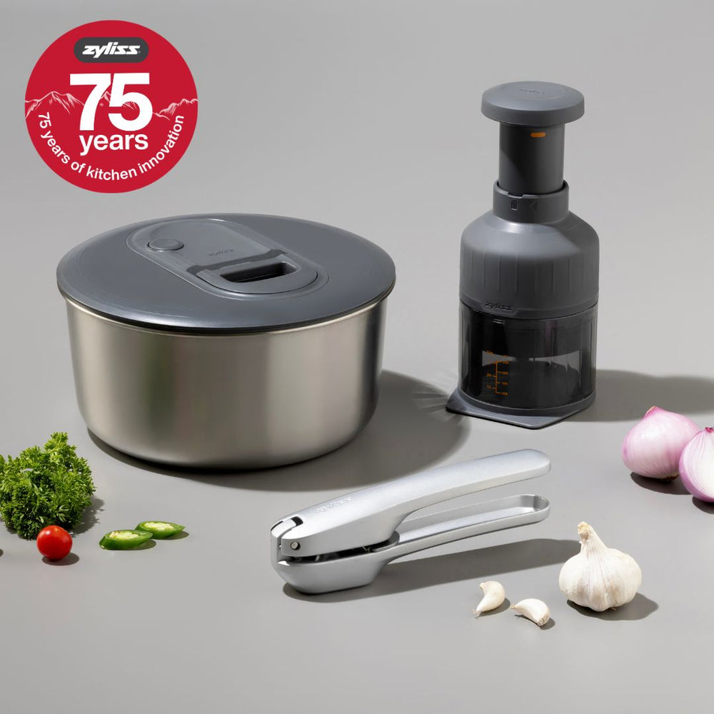 It began in Switzerland with inventor Karl Zysset. A simple idea turned a bicycle brake into the world’s first garlic press, the susi, making it possible to enjoy garlic without smelly fingers. This marked the beginning of zyliss, founded in 1951 and has been shaping kitchens ever since. Explore our full story and celebrate 75 years of kitchen innovation with us.