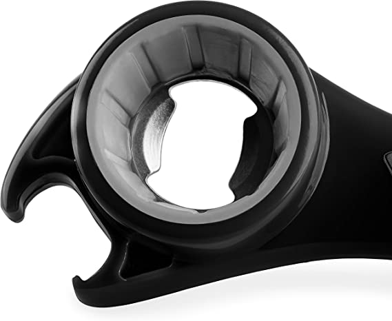 The Zyliss 5 Way Opener easily opens metal bottle caps, soda pop tops, machine sealed plastic bottles and tuna can pull tabs. Designed to break the vacuum seal on hard to open jars. Improved ergonomic design for comfortable, secure grip.