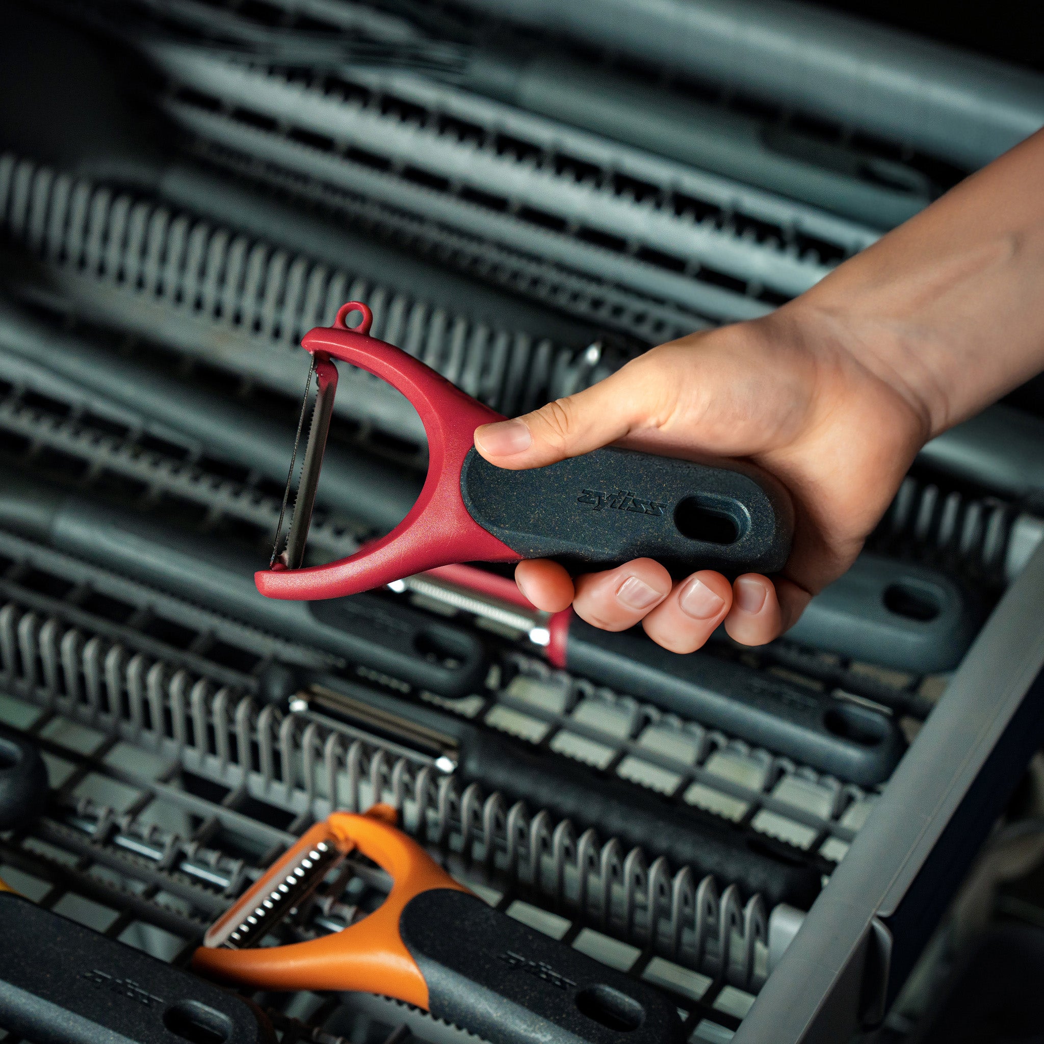 Meet the Zyliss Soft Skin Y Peeler, your go-to tool for effortlessly peeling delicate fruits and vegetables like tomatoes, kiwis, and pears. Crafted with an eco-friendly wheat straw handle, this peeler reduces plastic use by up to 50% while providing a comfortable, ergonomic grip. The micro-serrated swivel blade glides smoothly for precise peeling, and the side eye cutter tackles imperfections with ease. With its durable blade guard, food-safe construction, and dishwasher-friendly design, this peeler is built to last. Enjoy peace of mind with a 5-year guarantee, blending sustainability, performance, and reliability into one essential kitchen tool.