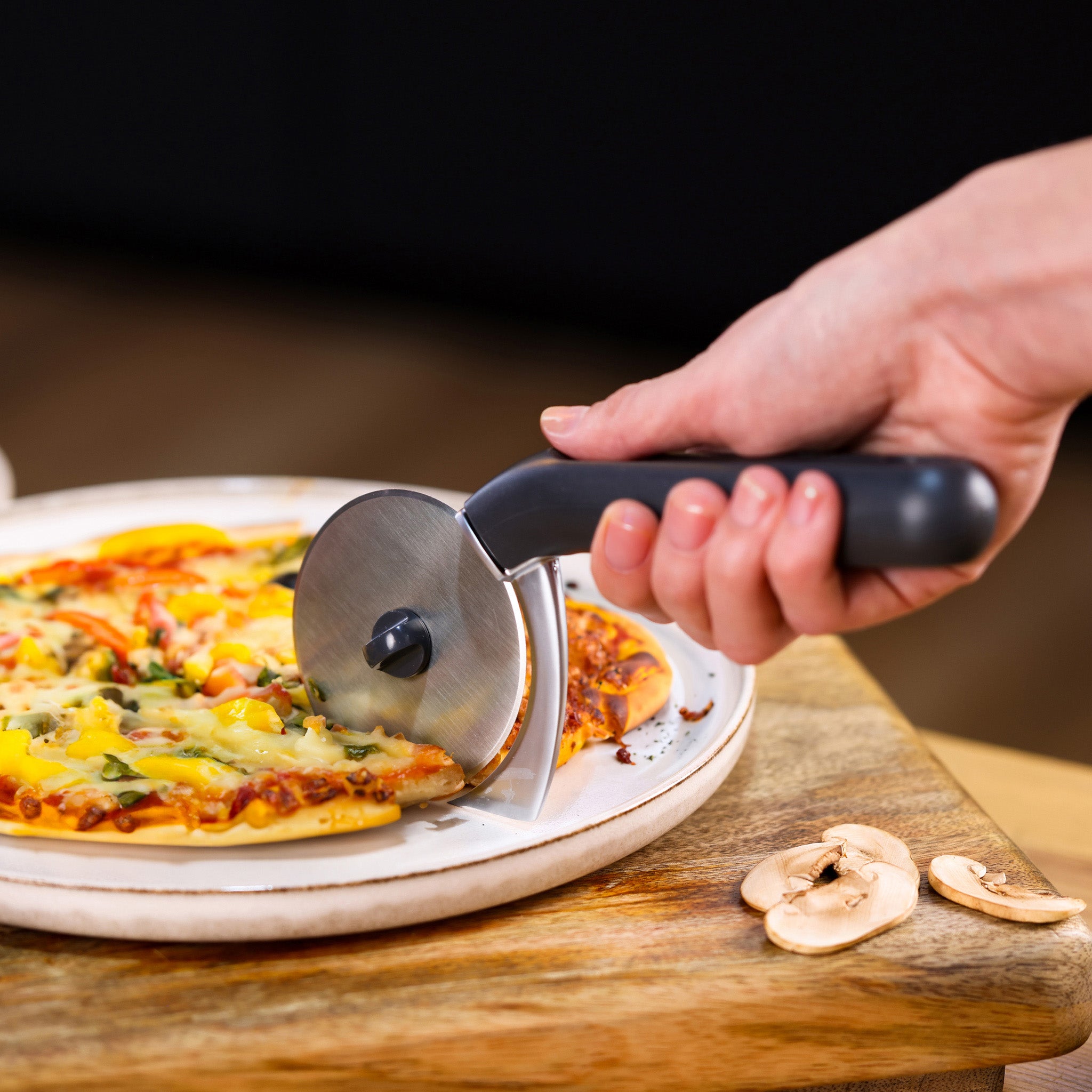 Effortlessly slice through pizza, quiche, and pastries with the precision of the Zyliss Pizza & Pastry Cutter. Its sharp blade wheel glides through pizzas with ease, while the included crust cutter tackles those tricky corners. The comfortable, ergonomic handle does not compromise on grip. Designed for convenience and superior hygiene, the blade is removable for effortless cleaning. With a 5-year guarantee, this cutter is a durable and dependable addition to any kitchen.