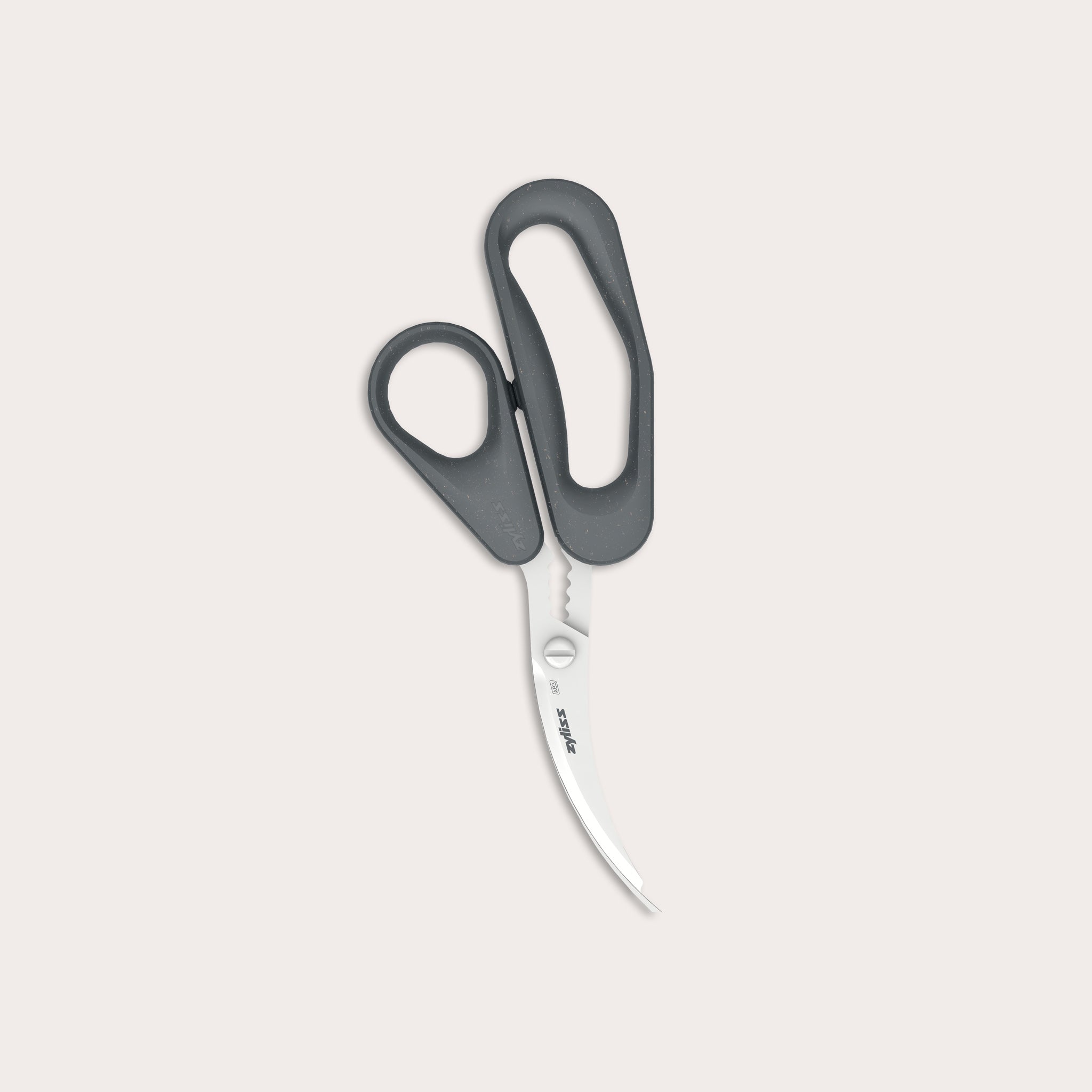 The Zyliss Seafood Scissors are designed to make shellfish prep effortless. The curved, serrated stainless steel blades cleanly cut through crab legs or lobster shells without damaging the delicate meat inside. A built-in cracker tackles tougher claws with ease. Featuring an ergonomic handle made with wheat straw plastic to reduce virgin plastic use, these dishwasher-safe scissors combine clever functionality with sustainable design.