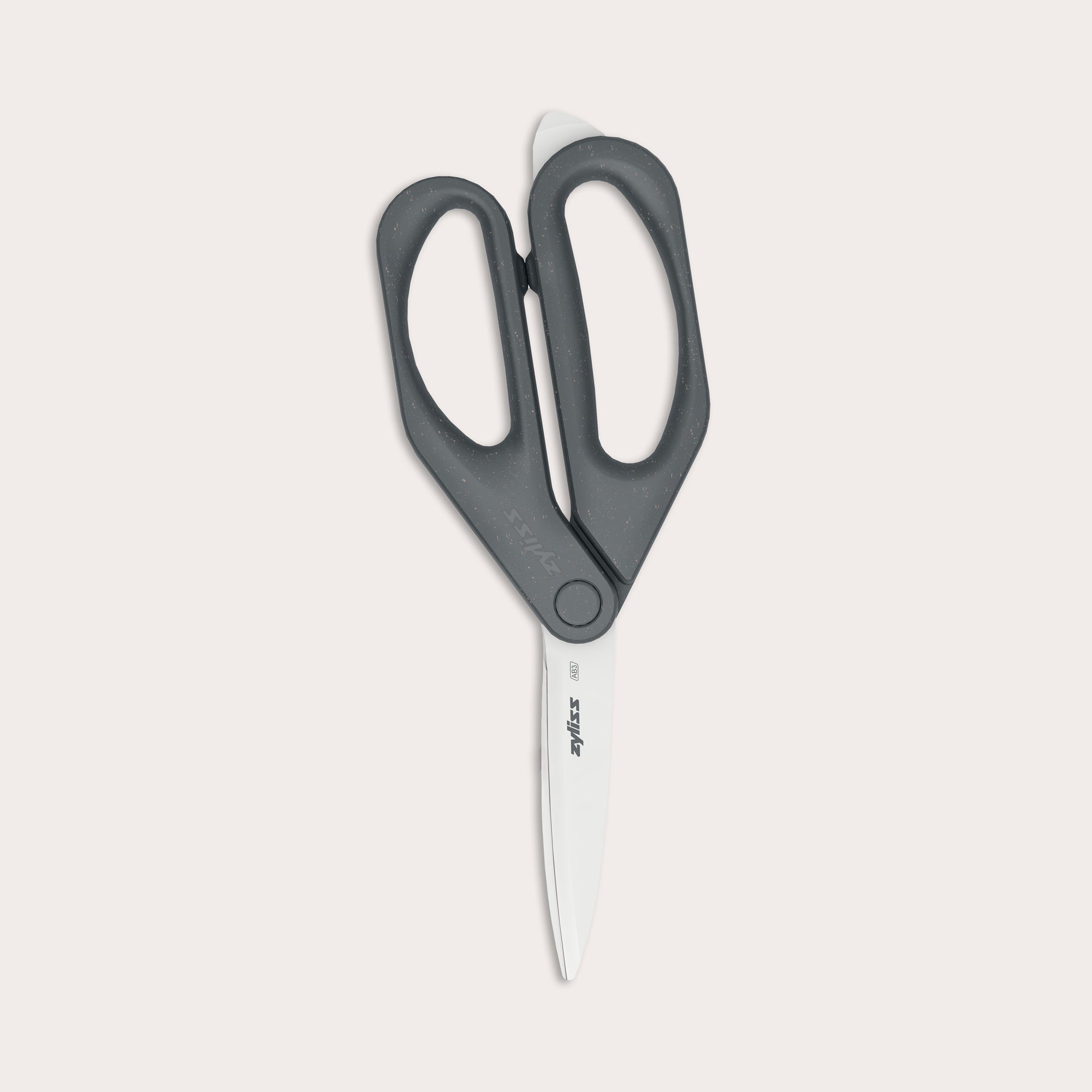 The Zyliss Household Scissors are built for everyday tasks with a thoughtful, sustainable design. Featuring precision stainless steel blades, they deliver smooth, reliable cuts through packaging, paper, string, and more. A sturdy hinge provides long-lasting durability, while the integrated box cutter easily opens sealed cartons and boxes—no need to reach for another tool.