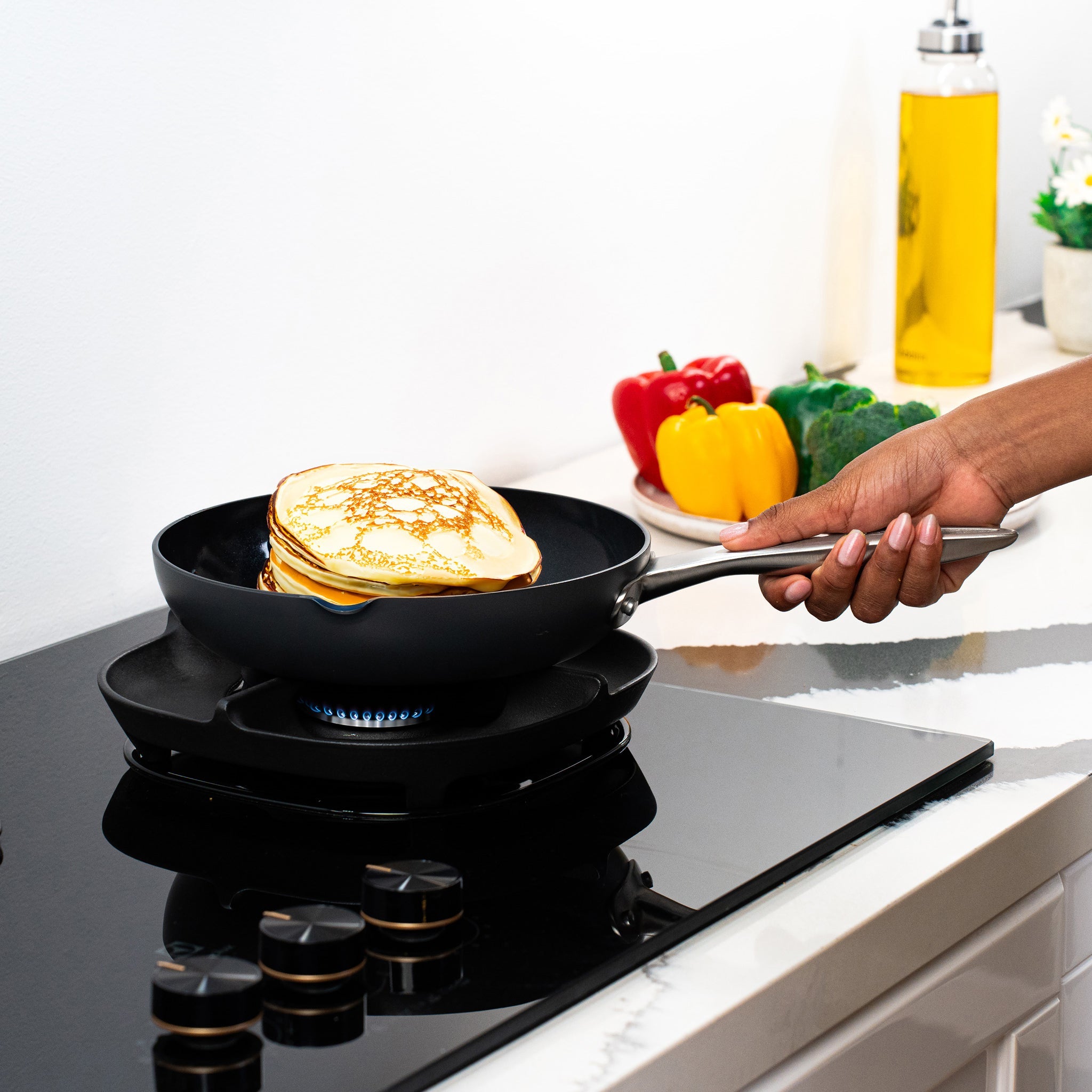 The Zyliss Ultimate Pro Ceramic Fry Pan is essential for effortless cooking and easy cleanup. Featuring our toughest-ever ceramic non-stick coating, it ensures smooth food release and lasting durability. Sustainably crafted with a recycled aluminum body and stainless steel base, it provides quick, even heating across all stovetops. Integrated pouring spouts add convenience, and the pan withstands temperatures up to 220°C (430°F), making it ideal for stovetop and oven use. Food-safe, dishwasher-safe, and suitable for metal utensils, it's backed by a 10-year Zyliss guarantee for reliable, long-term performance.